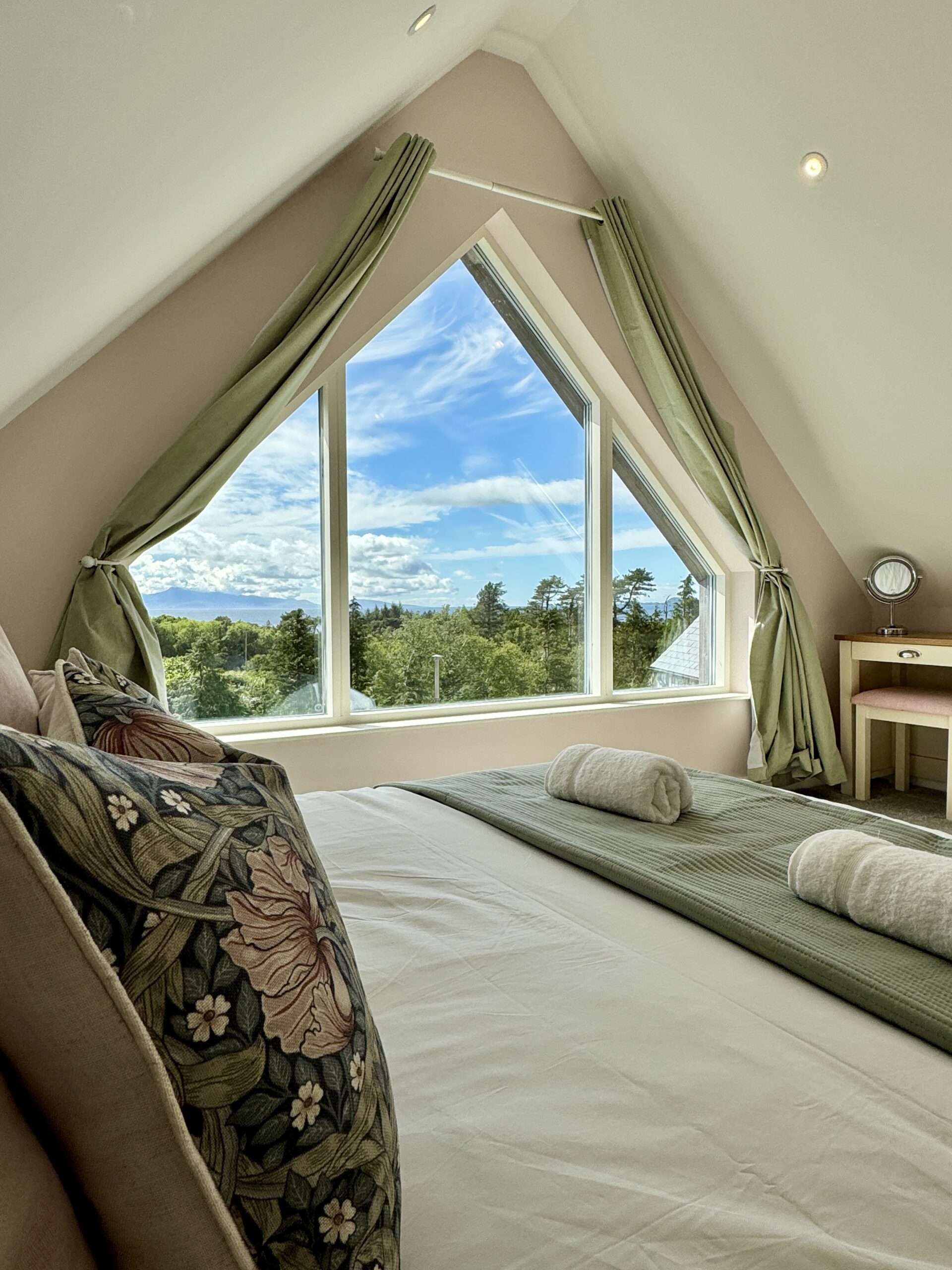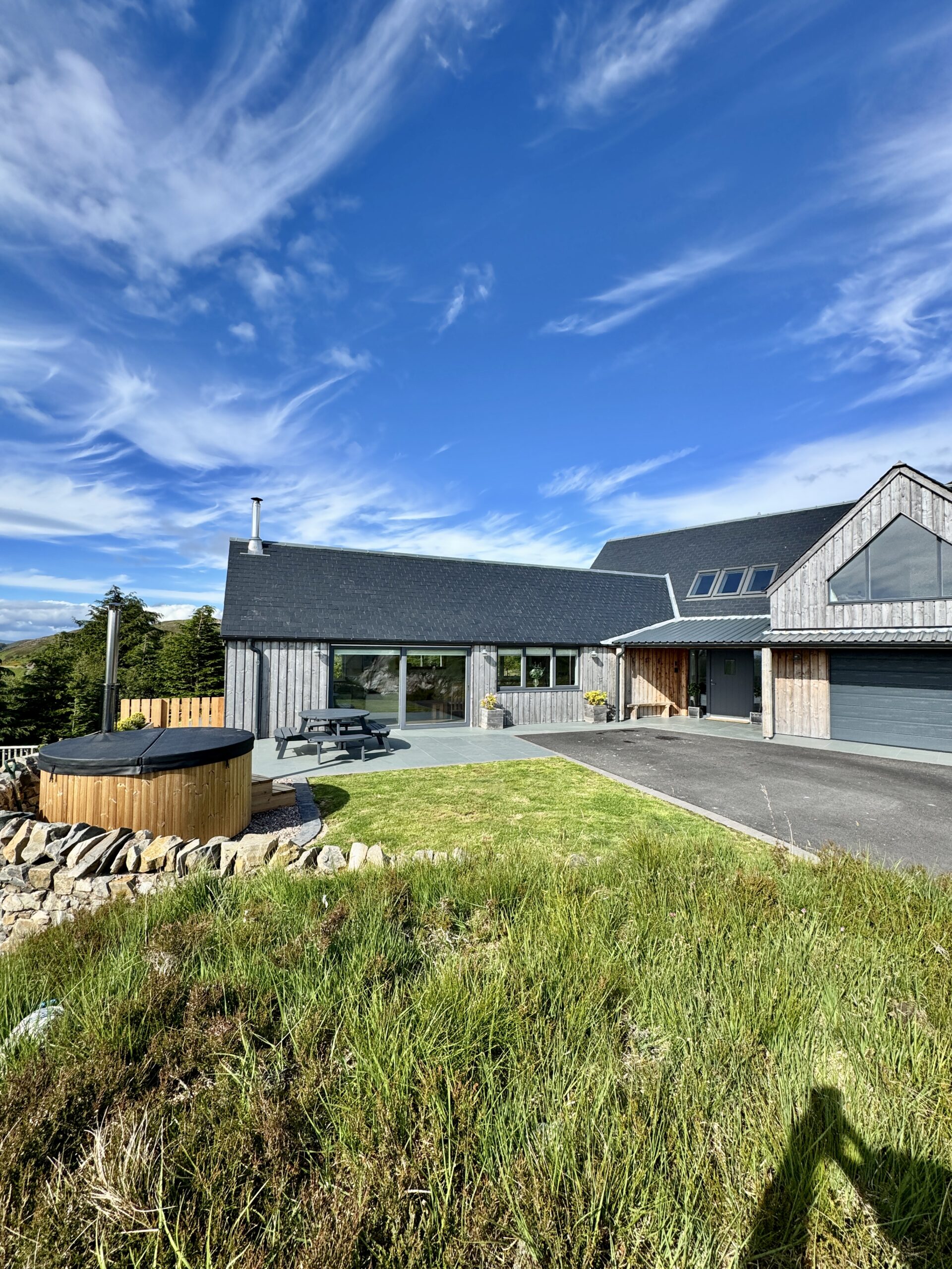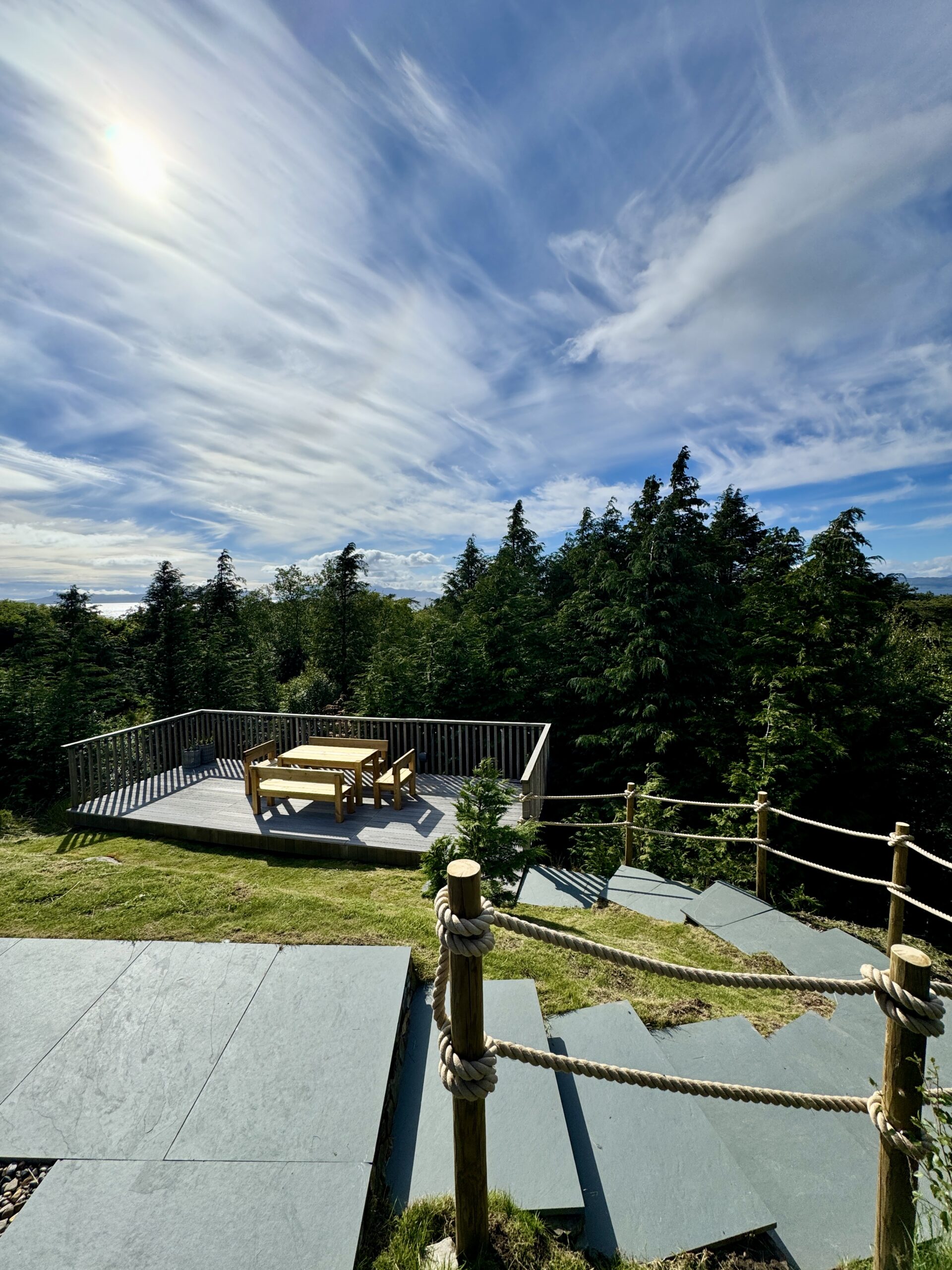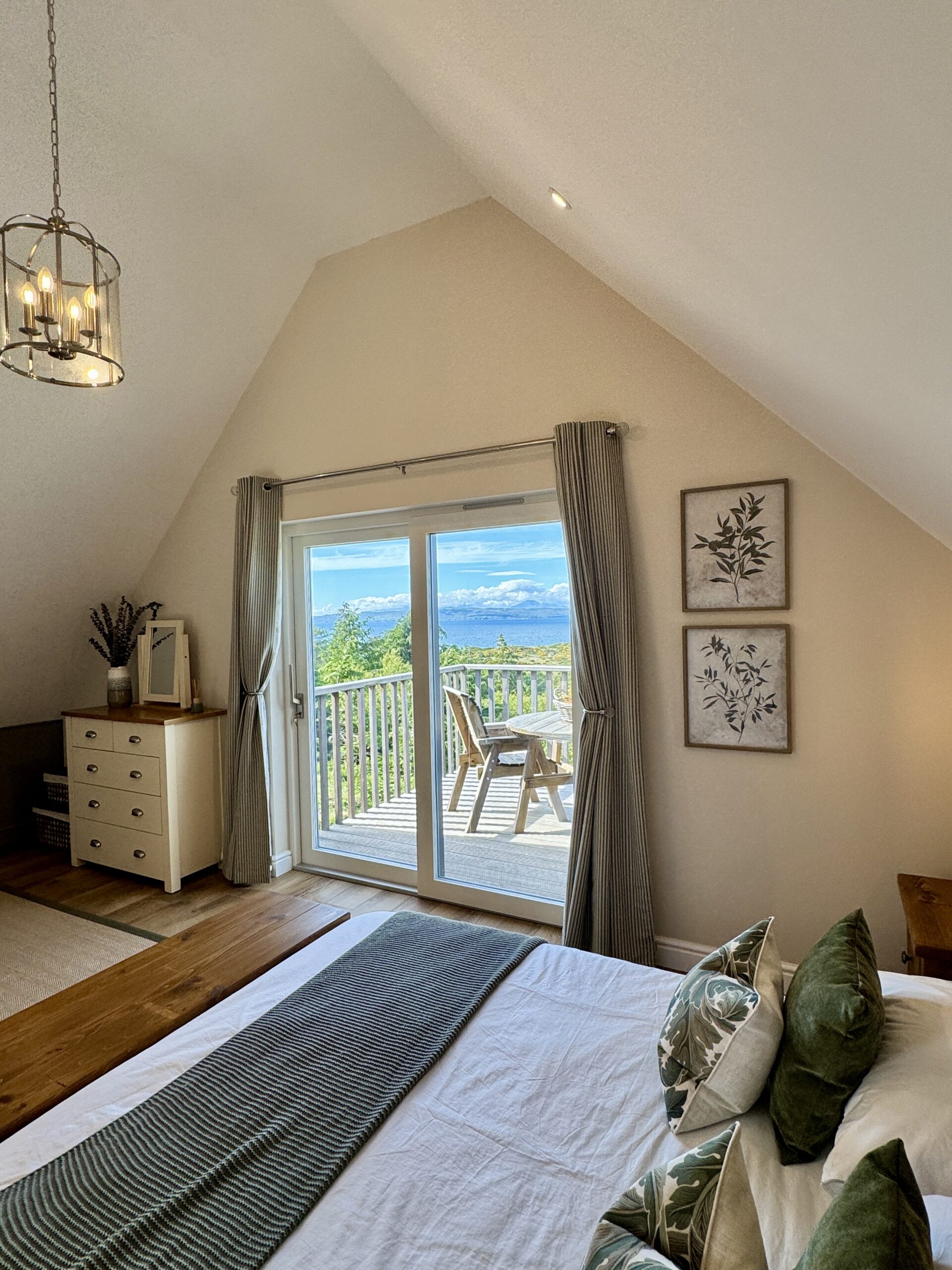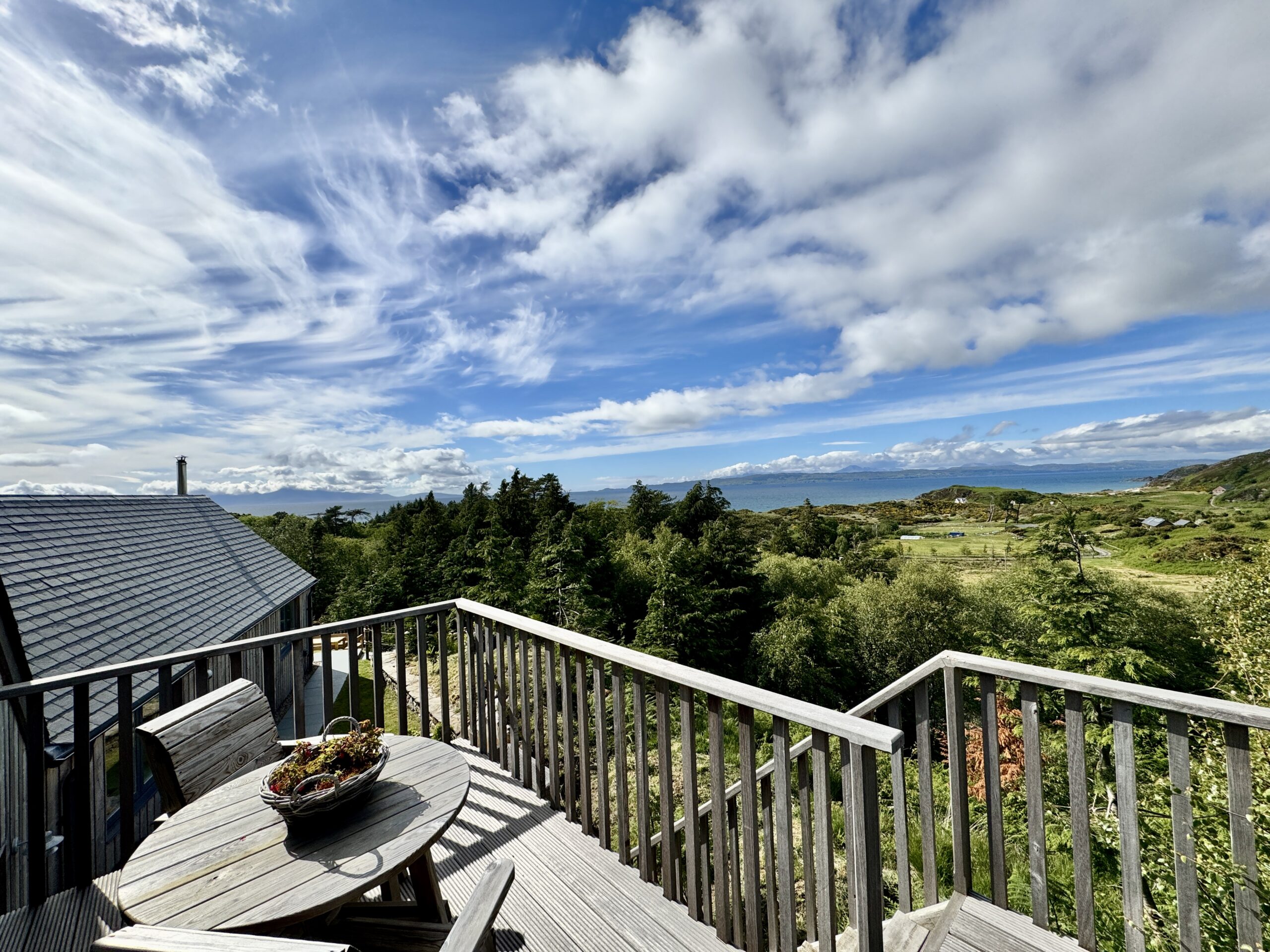 Pine View Lodge is our largest and most luxurious lodge. Offering 4/5 large bedrooms its the perfect retreat sleeping up to 10 guests. Nestled into the hillside, it boasts spectacular panoramic sea views overlooking the Small Isles of Eigg, Rum, and Skye.